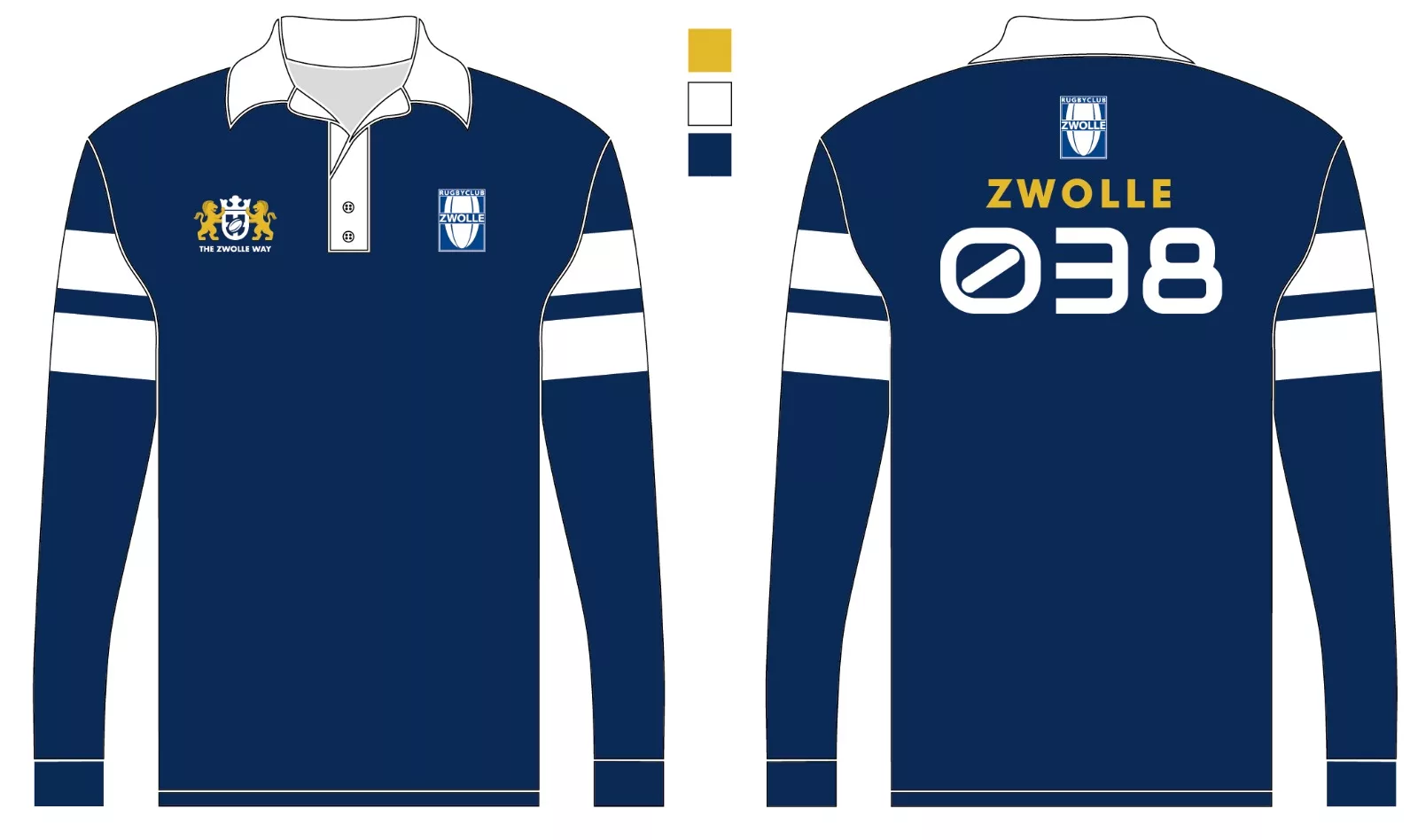 Je eigen premium rugbyshirt van Rugbyclub Zwolle! Met optionele naam- en rugnummeropdruk (+ €10.-).